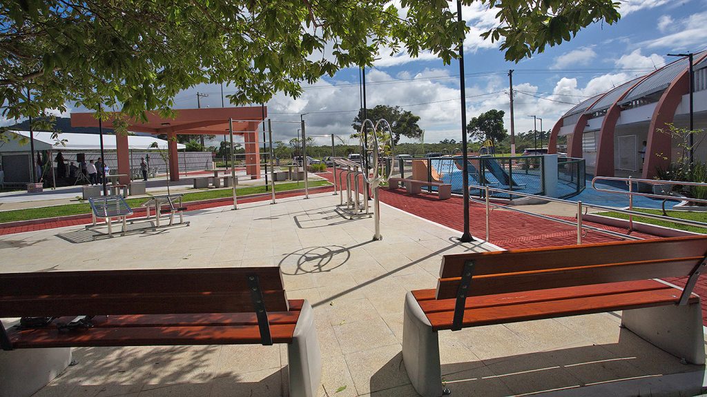 O espaço conta com playground coberto e descoberto, área multiuso, equipamentos de academia, arquibancada, sala de leitura e banheiros. As obras duraram um ano, sendo priorizada a contratação de mão de obra local.