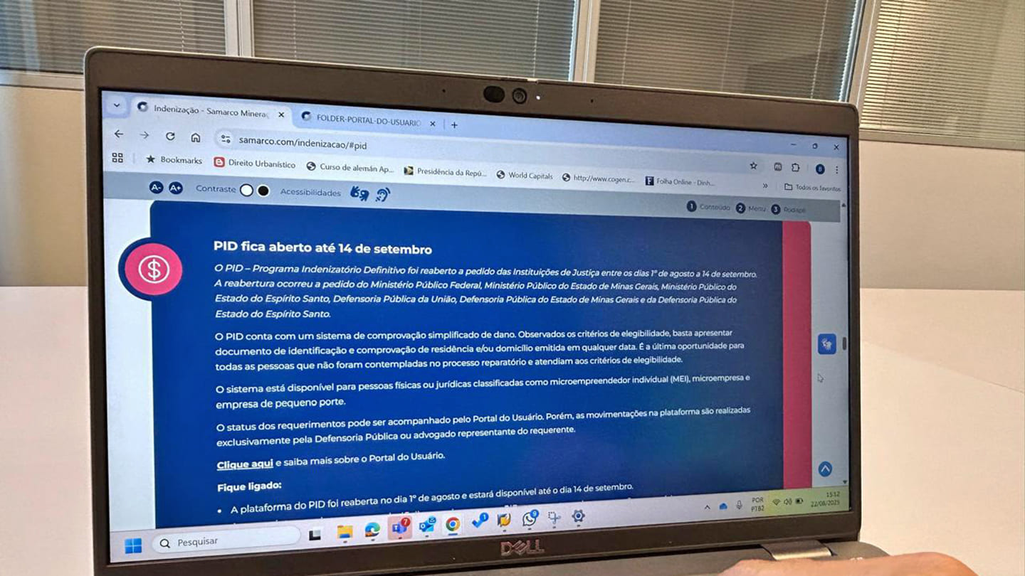 O Programa Indenizatório Definitivo (PID) entrou na reta final e se aproxima da data de fechamento da plataforma em 14 de setembro de 2025, conforme pedido das Instituições de Justiça. Restando apenas 20 dias para ingresso, a iniciativa já ultrapassou 306 mil requerimentos e se consolida como o sistema mais efetivo para permitir a indenização de pessoas elegíveis conforme determina o Novo Acordo do Rio Doce.