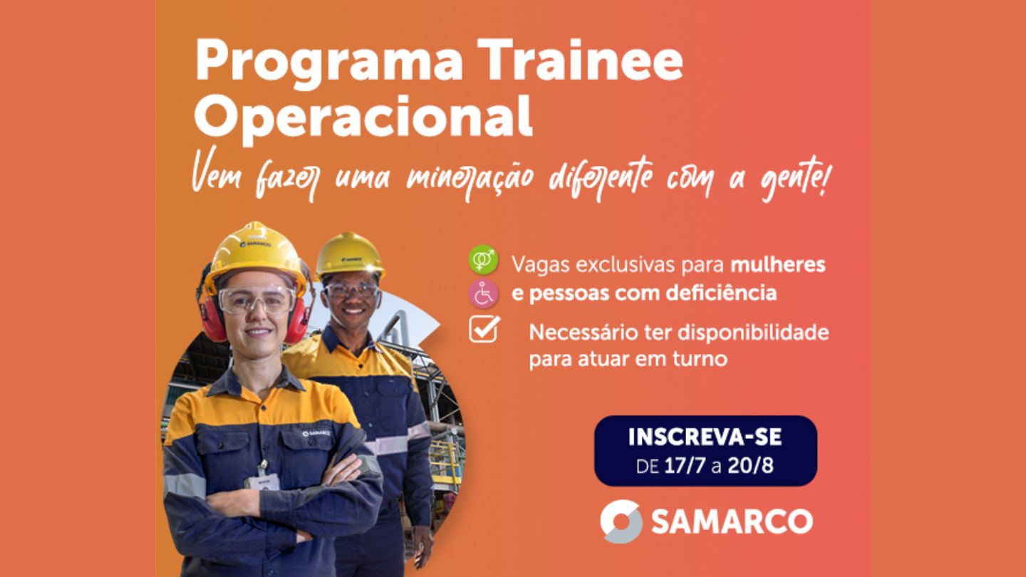 A Samarco lançou um novo Programa de Trainee Operacional, nesta segunda-feira (17/07), para atender ao planejamento da empresa de dobrar a produção de 30% para 60%, até 2025, conforme anunciado no início de julho.