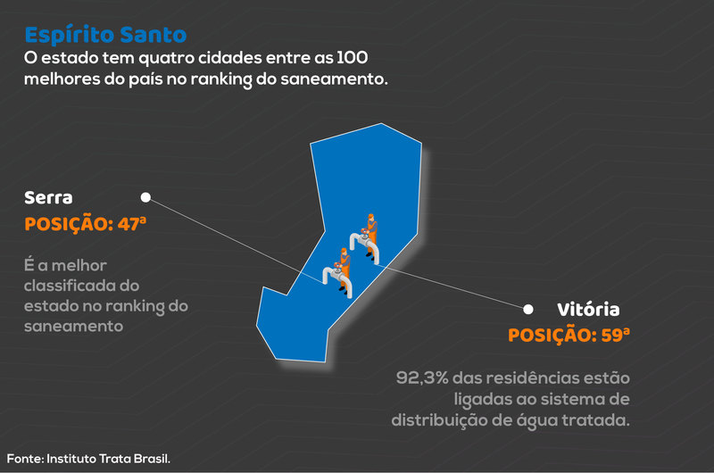 Apenas cinco em cada 10 residências do Espírito Santo (52,2%) estão ligadas a redes de coleta de esgoto. O número deixa o estado como pior colocado do Sudeste quando se observa a cobertura do serviço na região.