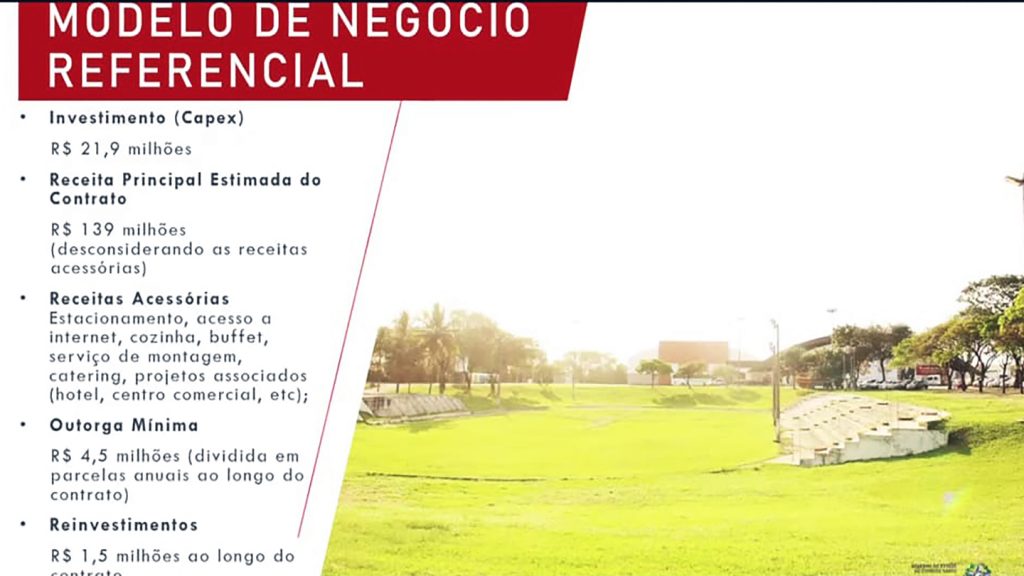 A ideia do governo é licitar, por 30 anos, o espaço do Pavilhão de Carapina, uma área de 108 mil metros quadrados, com três pavilhões (um deles climatizado) e um estacionamento para 1.600 veículos. O local é o principal centro de eventos do Estado e um dos maiores do País.