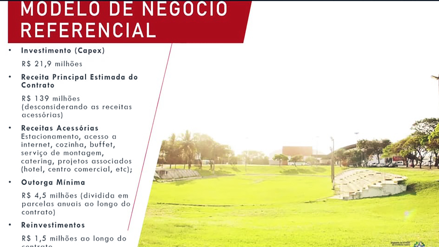 A proposta foi apresentada na última quarta-feira (23), durante a audiência pública on-line realizada pela Secretaria de Estado do Turismo (Setur) para concessão da Arena Multiuso à iniciativa privada. Na sexta (25), as empresas interessadas entregaram a documentação para a licitação.