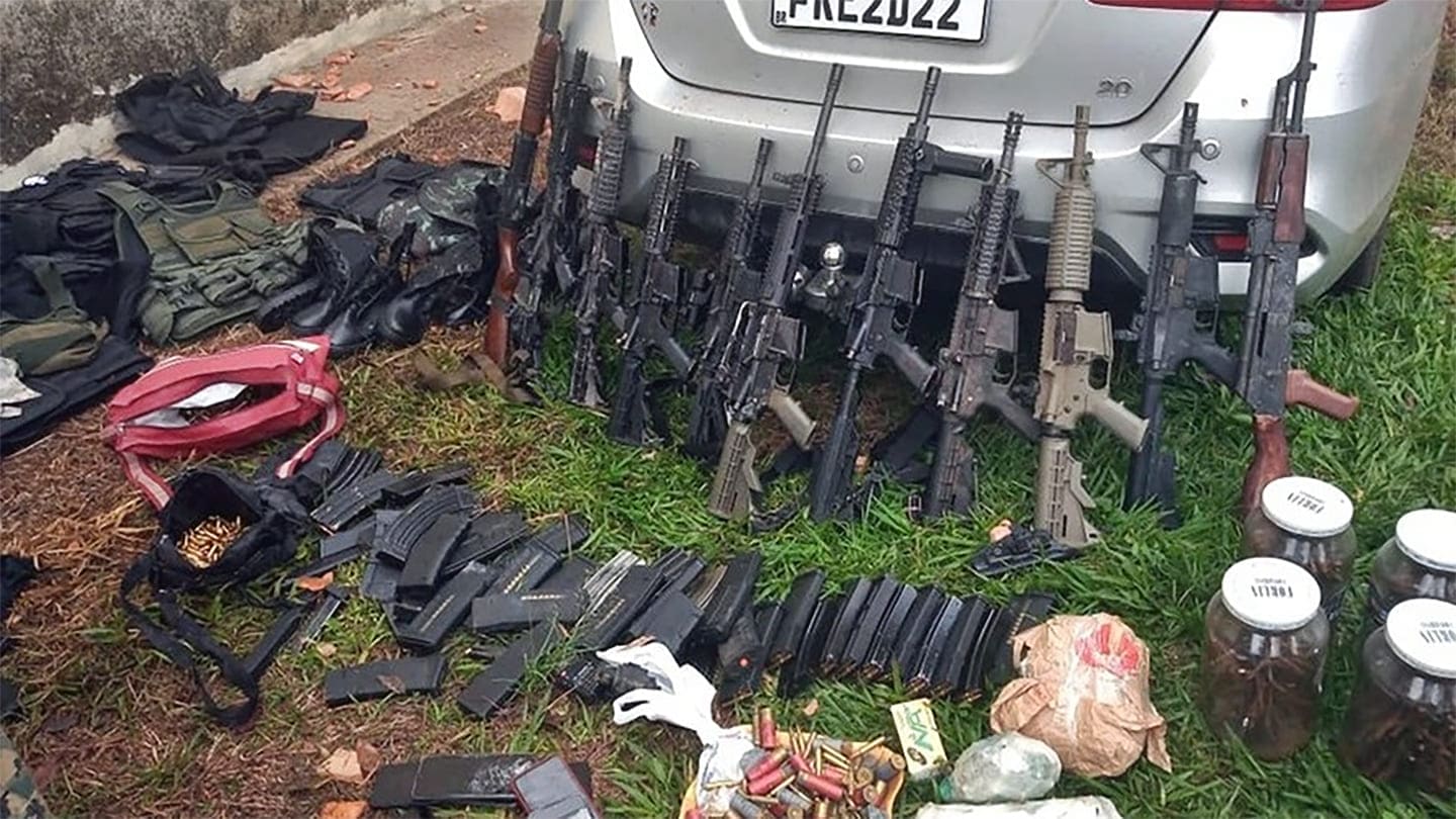 Durante as duas abordagens, foram recuperados explosivos, armas longas ponto 50 e 10 fuzis, além de outras armas, munições, granadas, coletes, miguelitos e 10 veículos roubados.