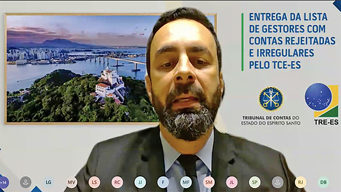 O presidente do Tribunal de Contas do Estado do Espírito Santo (TCE-ES), conselheiro Rodrigo Chamoun, entregou, em solenidade virtual, ao presidente do Tribunal Regional Eleitoral (TRE-ES), desembargador Samuel Meira Brasil Júnior, a lista de responsáveis cujas contas receberam parecer prévio pela rejeição ou foram julgadas irregulares com 918 citações.