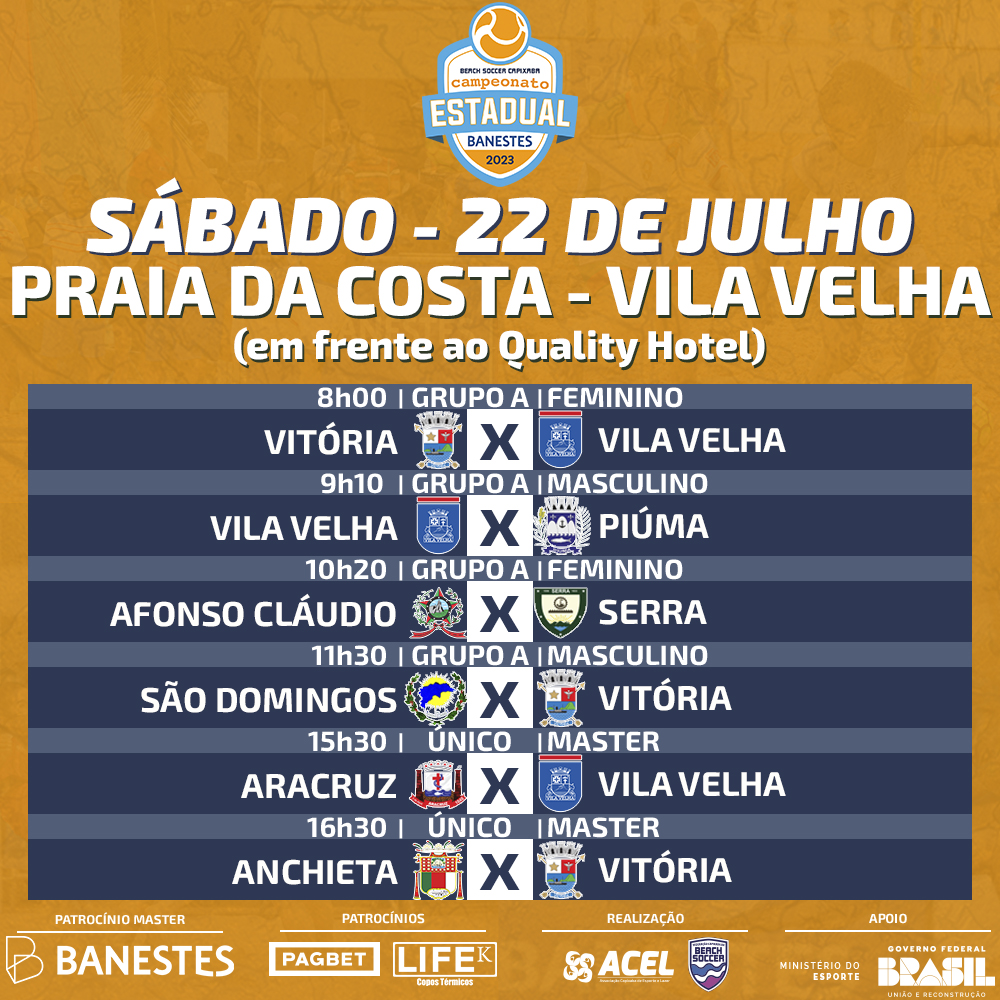 Os jogos começam no sábado (22), a partir das 08h da manhã. As vice-campeãs Vitória enfrentam Vila Velha, em partida que reprisa a final de 2021. Na sequência, os atuais campeões canela-verdes entram em quadra contra Piúma.