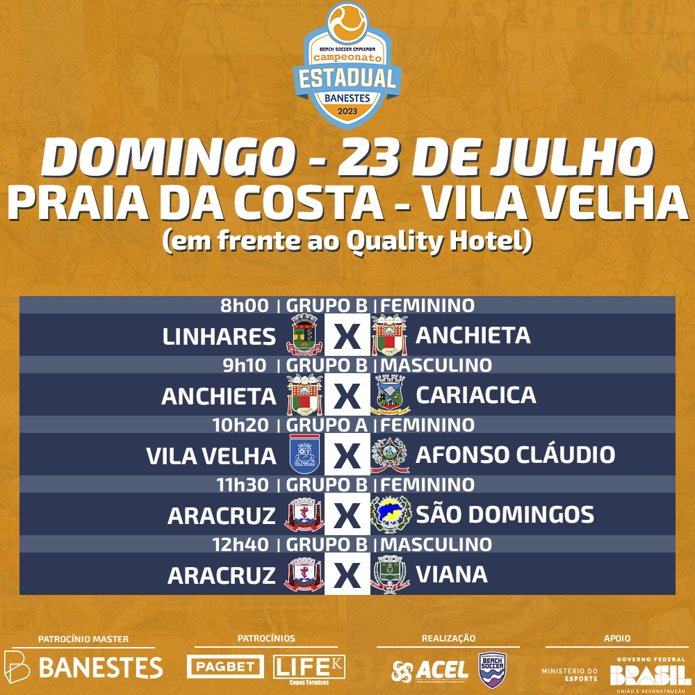 Após a realização das etapas regionais, com municípios do Norte, Sul e Centro do Espírito Santo, a Federação Capixaba de Beach Soccer (FECABES) organiza a Etapa Final do 23º Campeonato Estadual Banestes de Seleções. A competição tem início neste final de semana, com jogos aos finais de semana, na Praia da Costa, em Vila Velha.