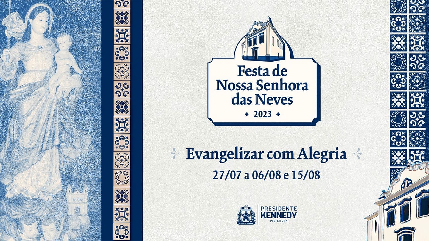 A cidade de Presidente Kennedy, conhecida por seu turismo religioso por meio da Igreja de Nossa Senhora das Neves, se prepara para receber a tradicional Festa das Neves, um evento que marca o calendário dos fiéis e turistas há muitos anos. A festividade, em honra à Nossa Senhora das Neves, acontecerá entre os dias 27 de julho e 06 de agosto e conta com uma programação diversificada preparada pela Paróquia Nossa Senhora das Neves, com o apoio da prefeitura Municipal de Presidente Kennedy.
