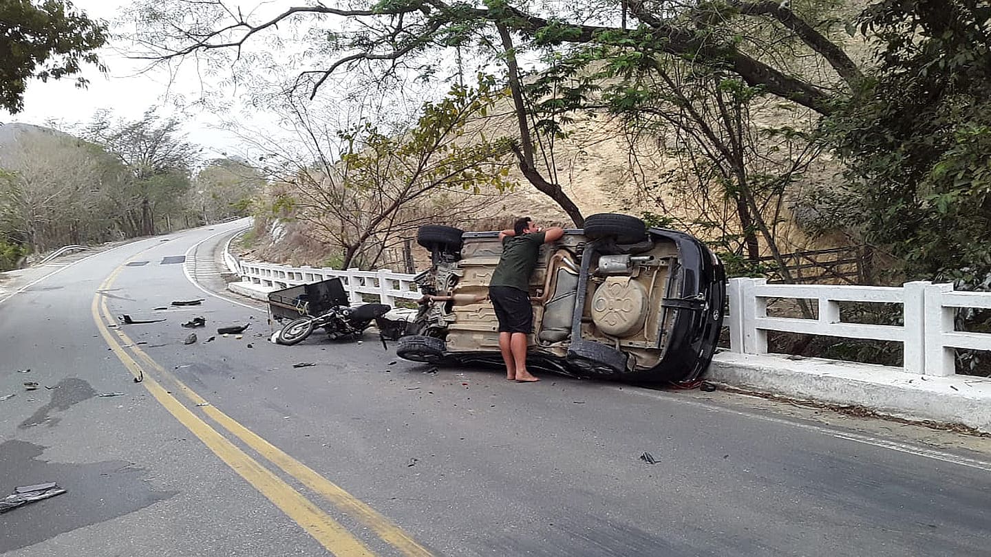 O veículo chegou a capotar em cima de uma ponte após colidir contra a Honda CG.