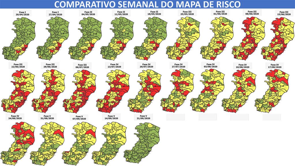 O Mapa de Risco segue as orientações dos boletins epidemiológicos do Ministério da Saúde e recomendações da equipe de especialistas do Centro de Comando e Controle (CCC) Covid-19 no Espírito Santo, que é composto pelo Corpo de Bombeiros Militar, Defesa Civil, Secretaria da Saúde (Sesa), Instituto Jones dos Santos Neves (IJSN), da Universidade Federal do Espírito Santo (Ufes) e do Instituto Federal do Espírito Santo (Ifes). As decisões adotadas pelo Governo do Estado seguem parâmetros técnicos.