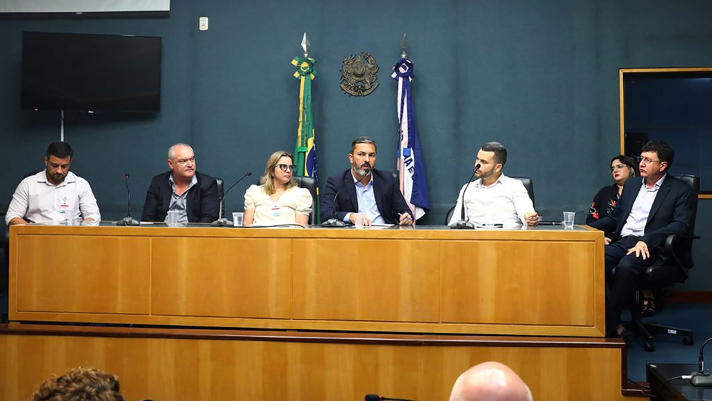 O presidente da Frente Parlamentar em Defesa da Construção da Estrada de Ferro 118 (EF-118) e do Porto Central, deputado Tyago Hoffmann (PSB), realizou reunião de instalação dos trabalhos nesta quarta-feira (14), no Plenário Rui Barbosa da Assembleia Legislativa (Ales). Para o evento, foram convidados prefeitos da região sul, autoridades estaduais e gestores da empresa Vale e do Conselho Administrativo do Porto Central.