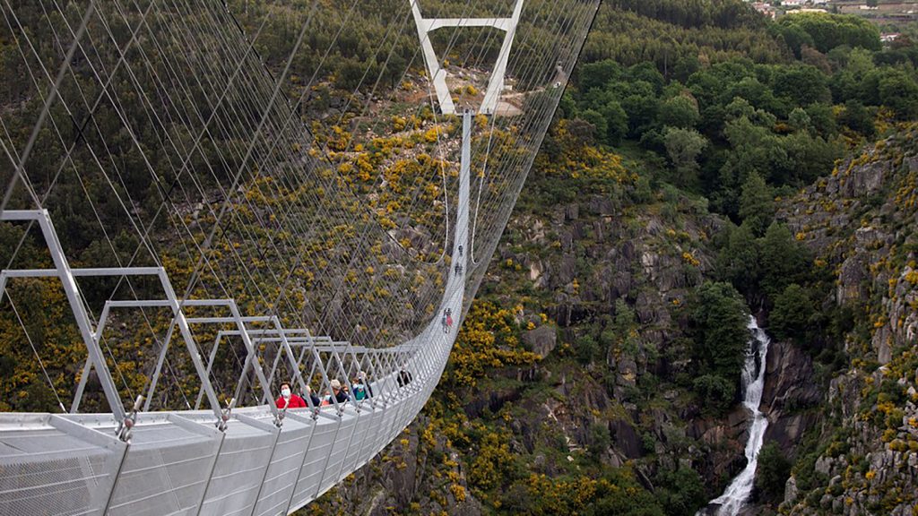 Escondida entre montanhas repletas de rochas e cobertas de folhagens verdejantes e folhas amarelas foi inaugurada no dia 29 último, uma ponte que promete receber turistas de todas as partes de Portugal, e por que não, de toda a Europa. A “516 Arouca”, maior ponte suspensa para pedestres do mundo, é uma passarela de grade de metal transparente de 516 metros de comprimento. Ela está localizada no Arouca Geopark, a 175 metros acima do Rio Paiva.