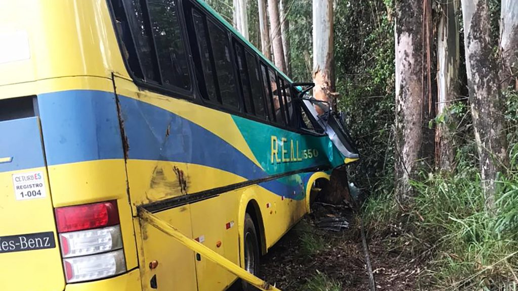 Um ônibus da Viação Real que saiu da rodoviária de Cachoeiro de Itapemirim na manhã de hoje (24) com destino à Conceição do Castelo, saiu da pista e bateu em árvores de eucalipto que ficam às margens da Rodovia ES-164, na proximidade de Taquarussu, em Vargem Alta.
