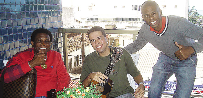 Neguinho da Beija Flor, Rogerinho do Cavaco e Leandro, em Guarapari, num momento de descontração antes do show que aconteceu dia 08 de agosto na Enseada Azul.