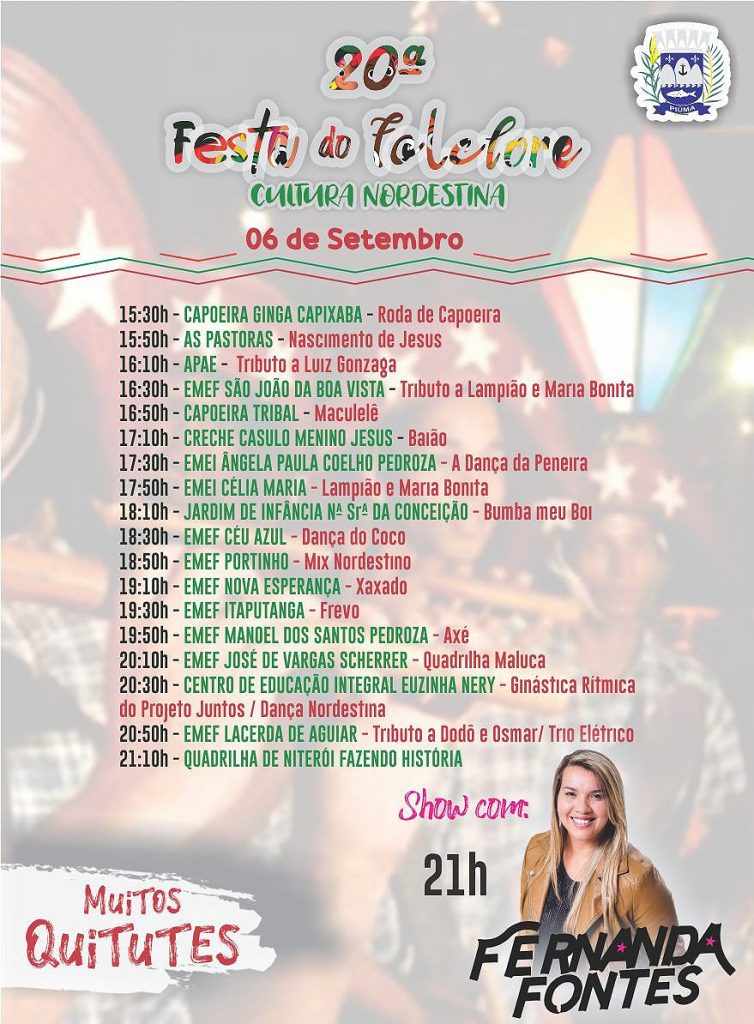 A tradicional Festa do Folclore, realizada pela prefeitura de Piúma, por meio das secretarias de Educação e de Cultura, traz este ano, o tema “Cultura Nordestina”.