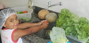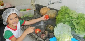 Os alunos participam diariamente de todos os processos desde preparação do solo para receber as sementes e mudas até a etapa da colheita dos legumes e verduras ali plantados. Tudo que é colhido é utilizado na preparação da merenda fornecida aos alunos do CMEI. No canteiro é possível colher alface, couve, repolho, tomate, cebolinha, abóbora entre outros legumes que enriquecem o cardápio dos alunos. “Estamos ampliando nossa horta, para que futuramente seja possível plantar outras verduras e legumes, incentivando entre os alunos o consumo de alimentos naturais”, comenta a diretora.