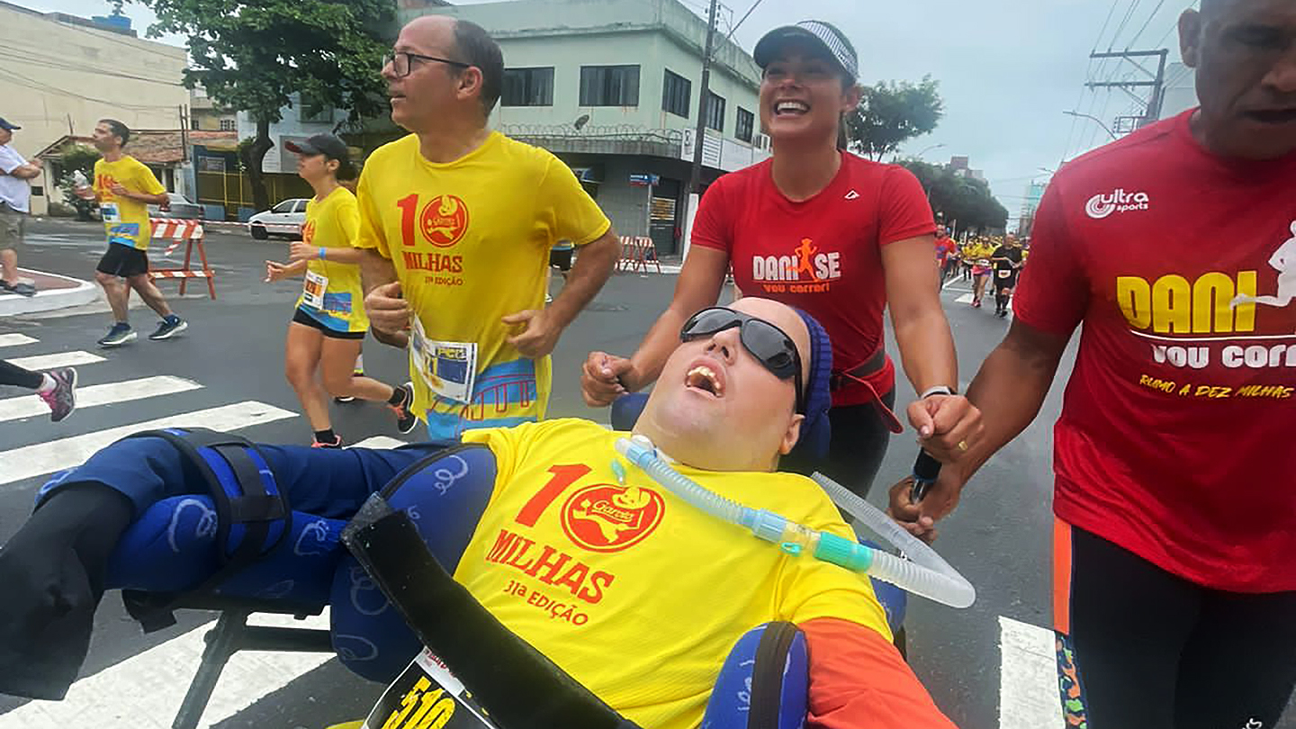 Depois da largada na Praia de Camburi, em Vitória, às 7h30, a tenente Andresa surgia correndo em vários pontos do trajeto empurrando a cadeira de rodas de Lucas Barbosa, que já participou de outras quatro competições de rua, sendo três com ela. Durante o percurso, Andresa permanecia ao lado do rapaz junto com os pais dele, além de familiares.