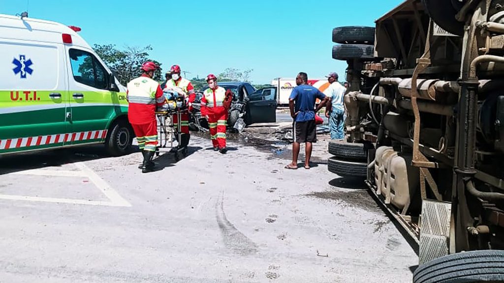 VÍDEO | Acidente com micro-ônibus escolar na BR 101, em Anchieta, deixa alunos feridos