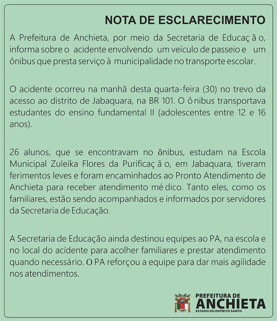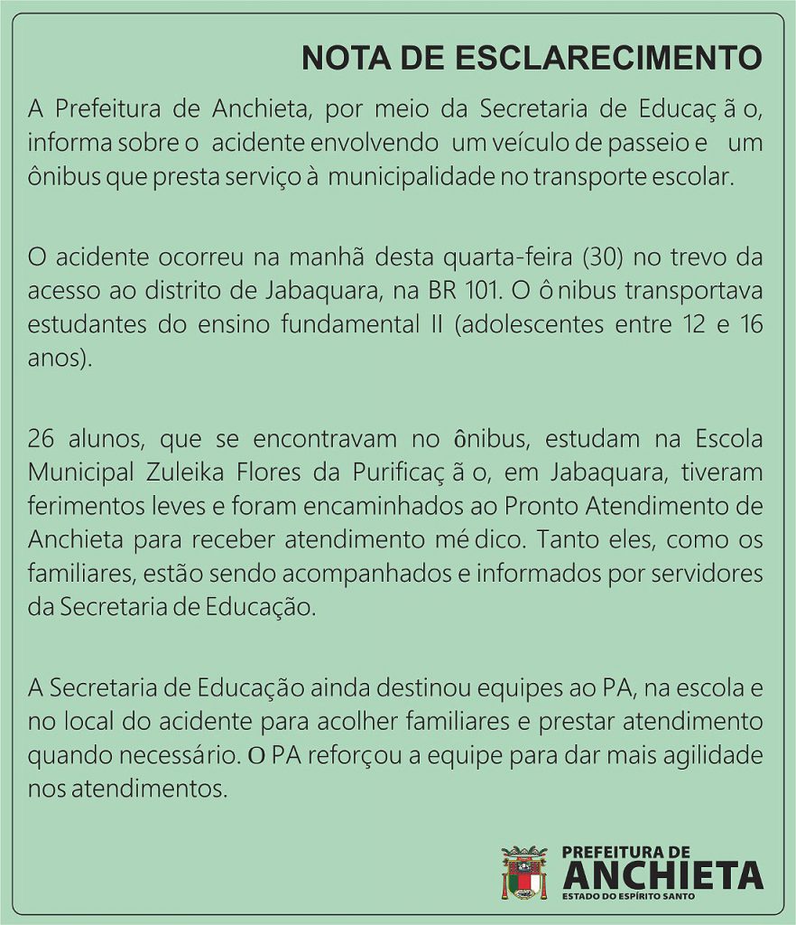 Nota da prefeitura de Anchieta