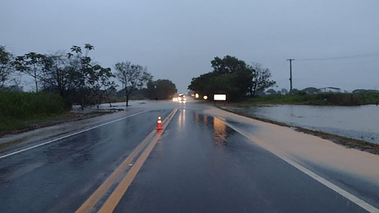 Além de São Mateus, outras rodovias também estão com o mesmo problema: no Km 162, em Linhares a pista está interditada devido a um alagamento.