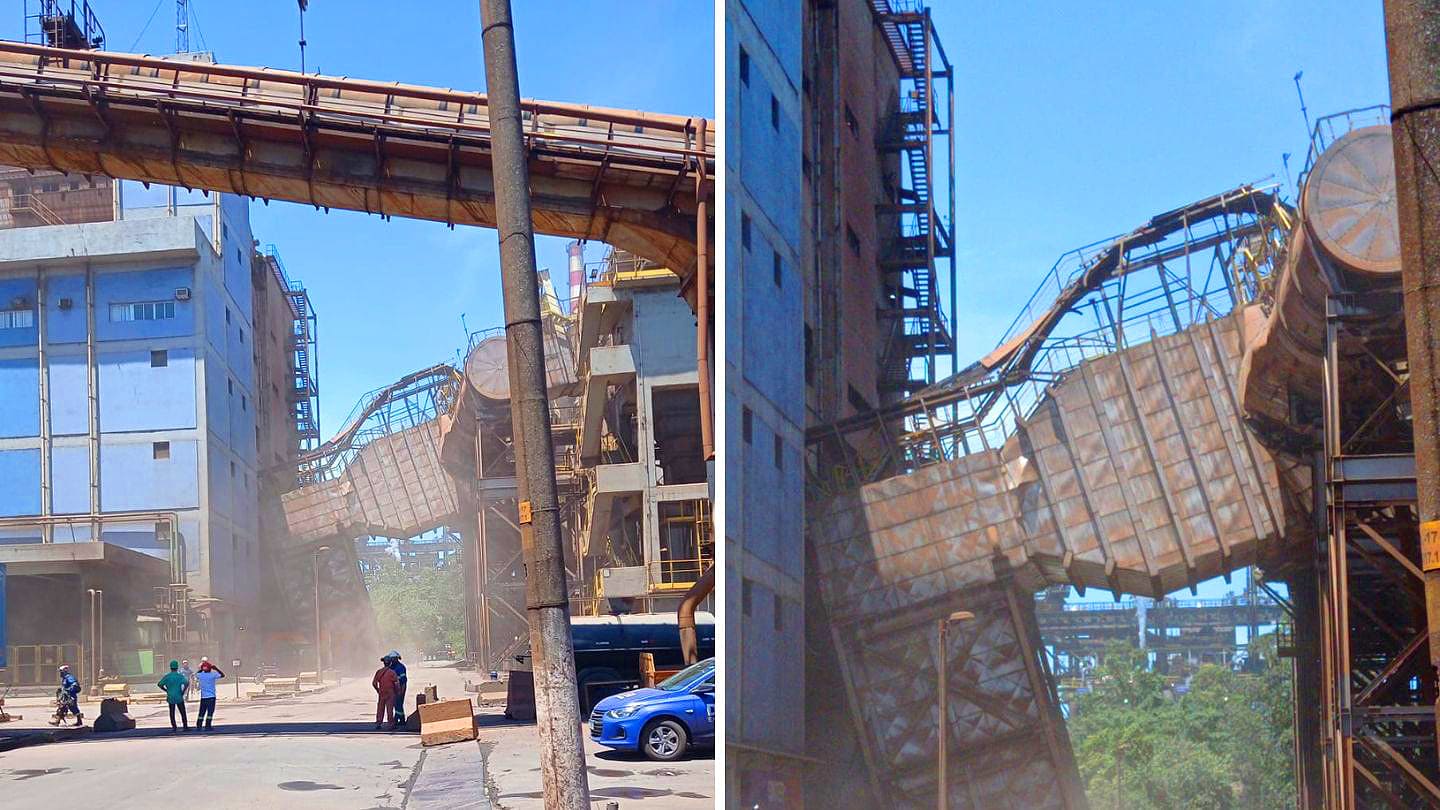 Vídeos divulgados nas redes sociais mostram parte da estrutura metálica, na área de sinterização, tombadas no local. As causas do acidente estão sendo investigadas.