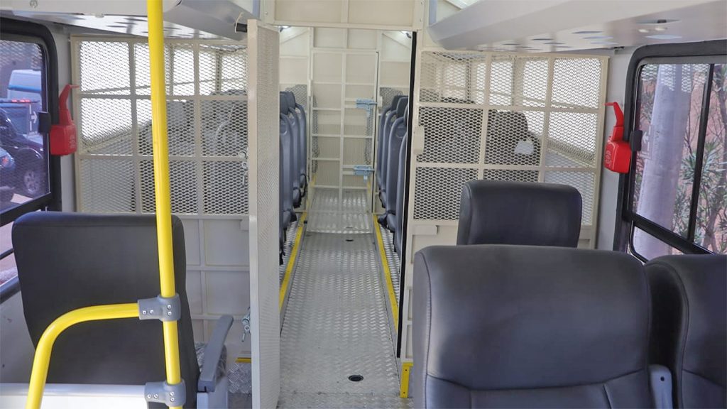 Com capacidade para transportar 28 internos, os ônibus possuem compartimentos de cela, sistema de CFTV e sinalização acústica e visual, além de adaptações no compartimento de escolta. Essas viaturas permitem maior comodidade e segurança para os servidores responsáveis pela escolta de presos. Já os furgões têm capacidade para transportar oito internos e oito inspetores penitenciários. No ano passado, o Depen investiu R$ 106 milhões em veículos para transporte de presos para aparelhamento das unidades federativas.
