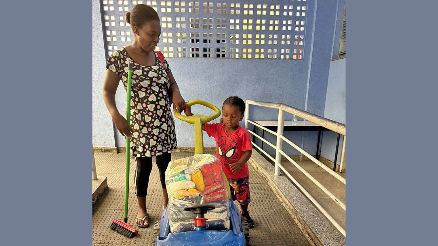 Para a dona de casa Cristiane Costa Rosa, de 40 anos, grávida de seis meses e com um filho de 2 anos, Miguel Ângelo, a entrega da cesta foi como um presente antecipado de Natal. A alegria era tanta que o pequeno Miguel fez questão de exibir a camisa do “Homem Aranha” para mostrar que tinha forças para levar o carrinho com a cesta dentro.