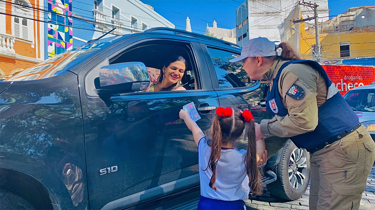 Com o objetivo de promover a educação no trânsito e a preservação de vidas, cerca de 35 crianças do Centro Municipal de Educação Infantil em Tempo Integral (Cmei TI) Menino Jesus, que fica no Centro, participaram de uma ação em parceria com a Guarda Civil Municipal de Vitória (GCMV), em que foram abordados mais de 50 veículos.