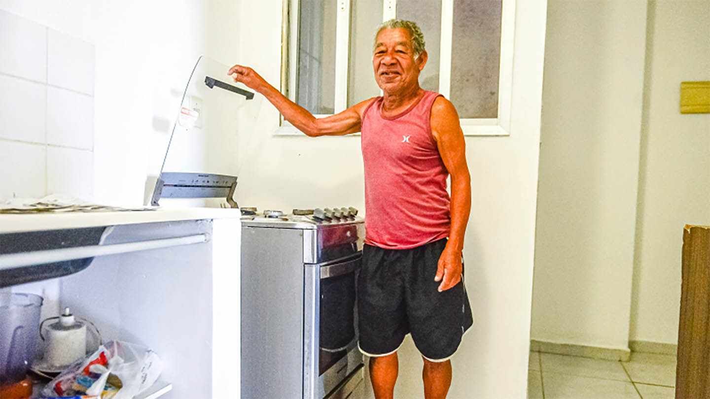 “Quase todos os dias eu ia conversar com a assistente social para saber se tinha alguma coisa para mim. Eu sempre acreditei que podia receber as doações para viver melhor. Eu não tinha condições de comprar esses móveis. Recebo essas doações com muita gratidão e alegria. Agora, eu tenho um lar de verdade”, falou emocionado. Seu Herminto vive com a renda do Benefício de Prestação Continuada (BPC).