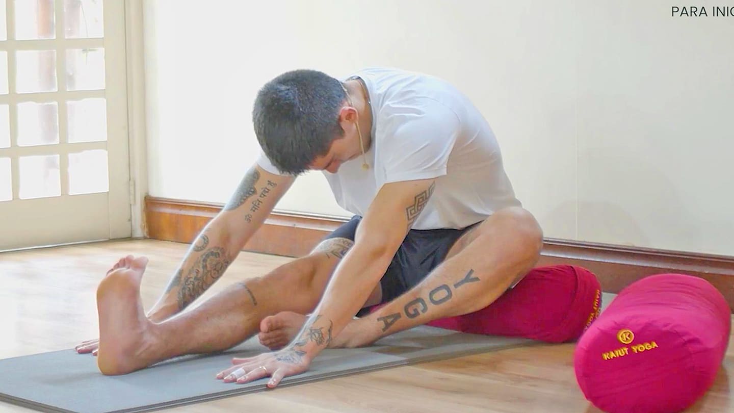 “Sente-se com uma perna estendida no chão para a frente e a outra dobrada ao máximo com a sola do pé encostando na outra coxa, após isso alongue a coluna enquanto pega no pé que está estendido, conte entre 5-10 respirações profundas”, explica Ravi Kaiut.